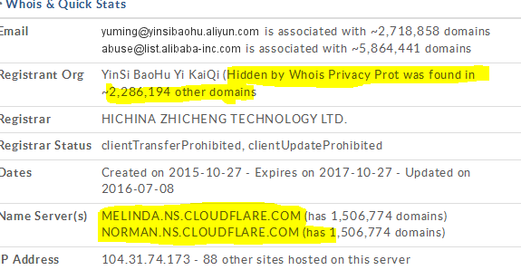 NameCheap.com (a registration service that many CloudFlare customers use because they hide identities)