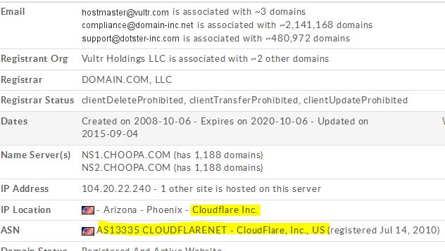 Registrar: Name.com, Inc.Further down in the sludge this ‘104.238.132.102″ ip address is listed.